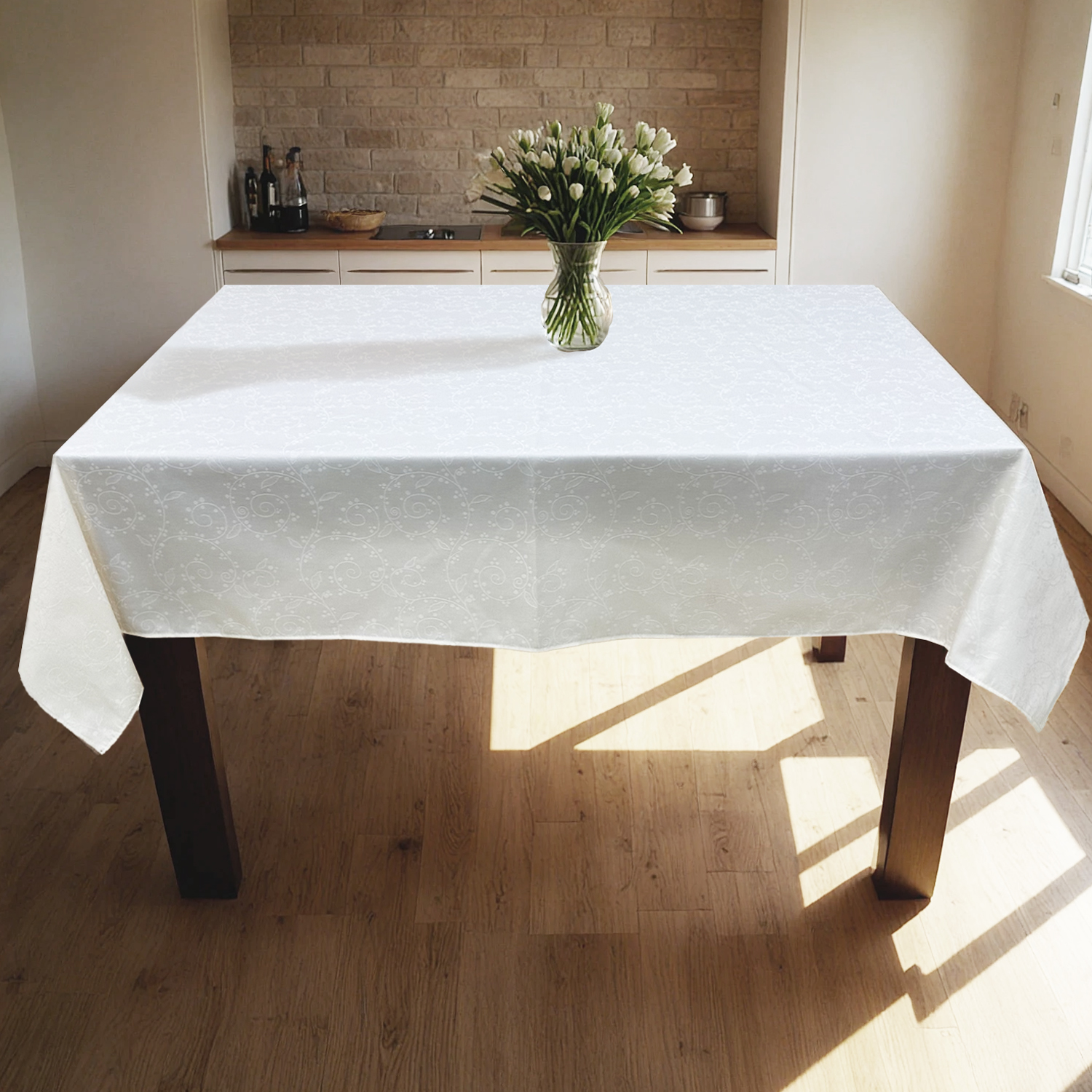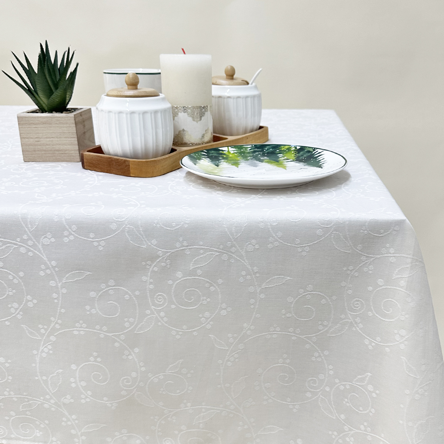Vrhunski kvalitet: Ovaj izdržljivi stolnjak je napravljen od vrhunske i otporne žakardne tkanine kako bi se osigurala zaštita vašeg stola. Napravljen od vrhunski obrađene tkanine, ovaj stolnjak je mekan i prilično otporan.
