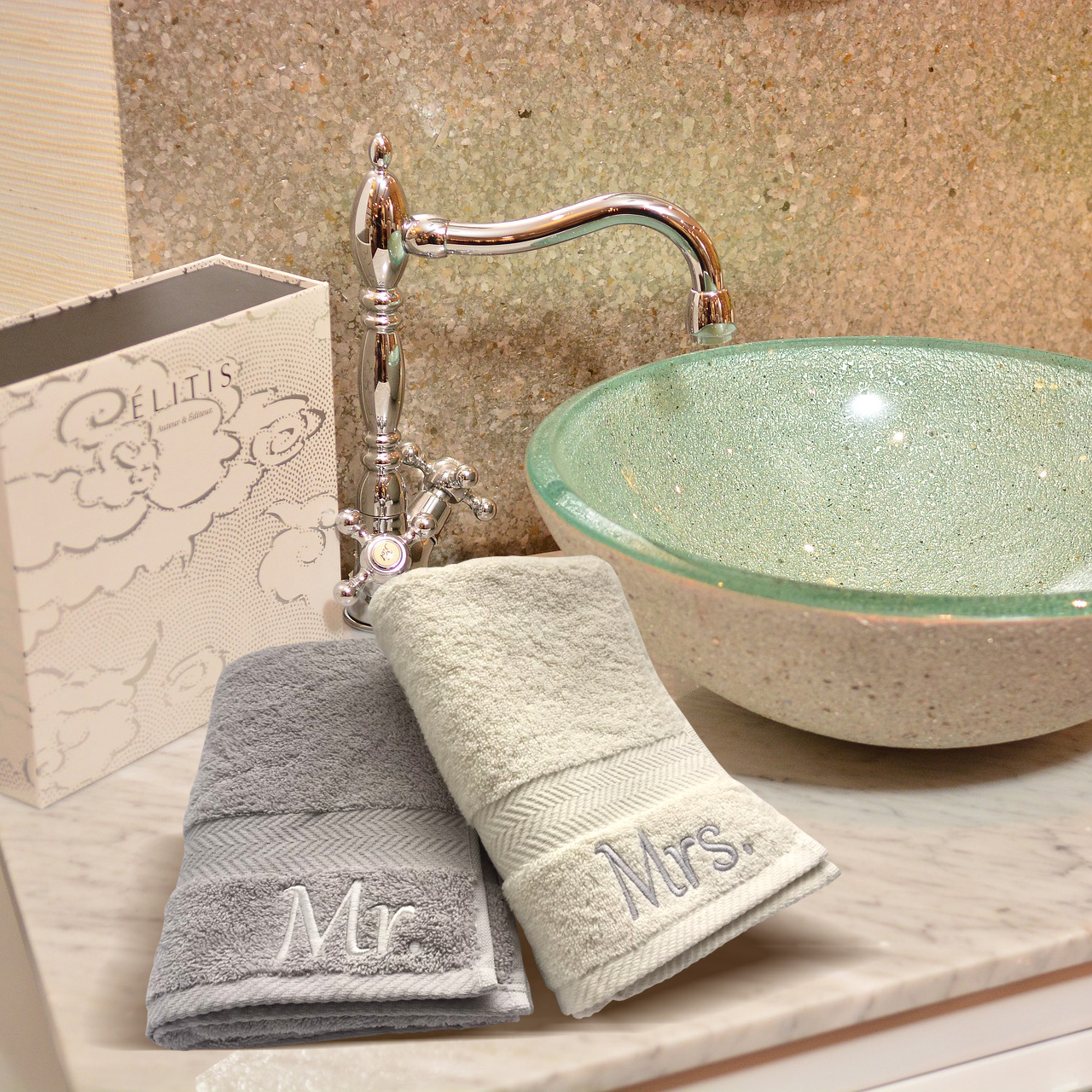 Zanimljiv set peškira za sve one koji žele da naprave harmoniju i red u svom kupatilu. Odličan su izbor i kao poklon za sve mladence, zaljubljene, bračne godišnjice, veridbe a uvezani su divnom i elegantnom saten trakom koja celom setu daje utisak otmenosti i elegancije.